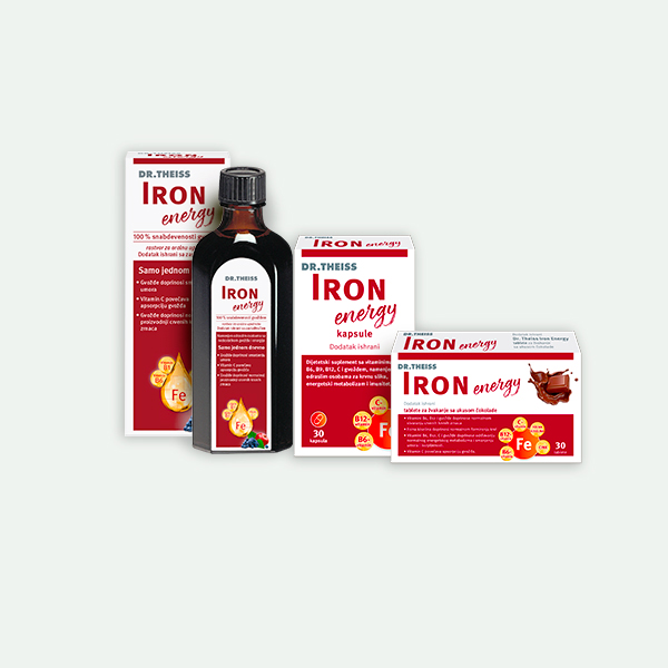 “Ojačaj svoj dan! Dr. Theiss Iron Energy kapsule – svakodnevna doza gvožđa i vitamina za jačanje imuniteta i krvne slike!”